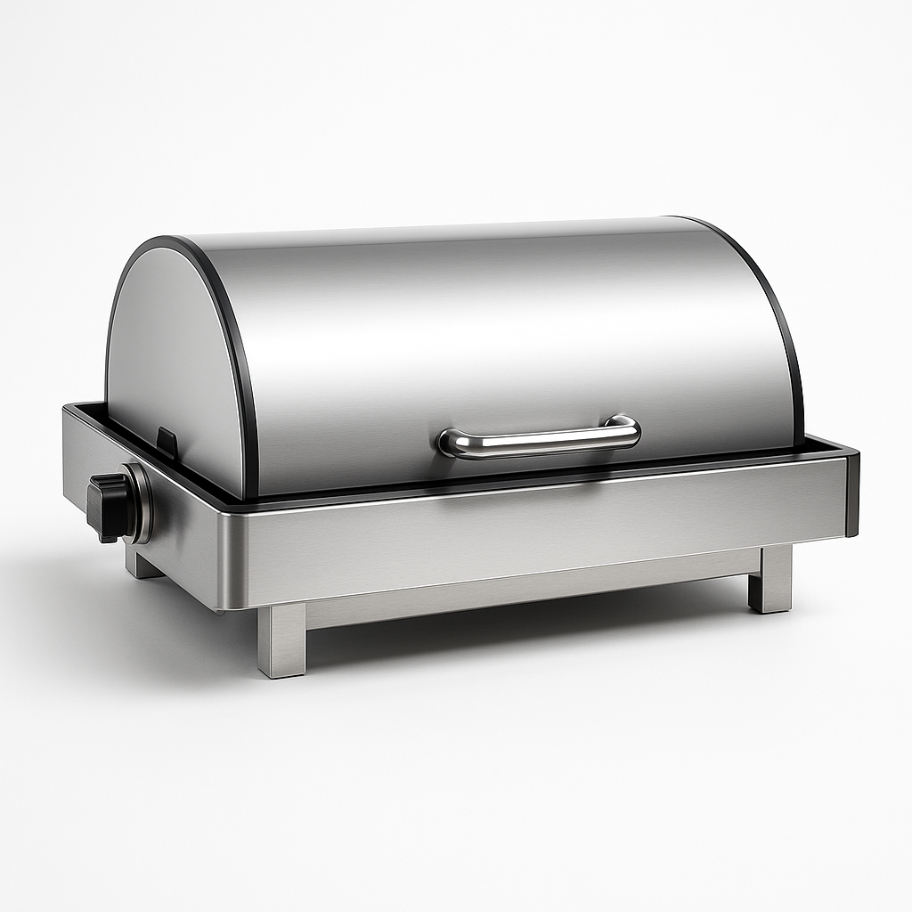 Otel ve restoran büfeleri için özel olarak tasarlanan gömme tip chafing dish, 180 derece döner kapak sistemiyle servis kolaylığı sağlar. Paslanmaz çelik gövdesi uzun ömürlüdür ve hijyen standartlarına tam uyumludur. Gömme yapısı tezgâha şık bir bütünlük kazandırırken sıcak yemekleri ideal ısıda tutar.