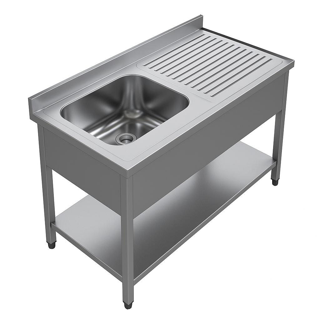/ Demonte Yıkama Ünitesi Tek Eviye Alt Raflı 304