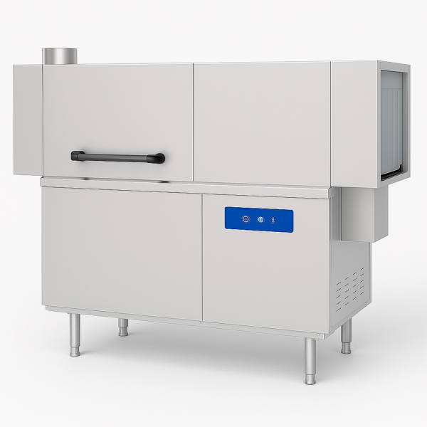 Sol girişli kurutmasız konveyör tipi bulaşık yıkama makinesi, yoğun tabak sirkülasyonu olan mutfaklarda hızlı ve kesintisiz yıkama sağlar. Kurutma modülü olmadan kompakt ve ekonomik bir çözüm sunar.