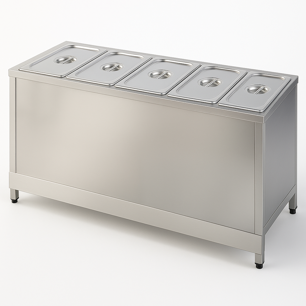 Daha fazla gastronorm kap kapasitesine sahip bu model, yüksek personel veya müºteri trafiği olan iºletmeler için idealdir. [cite: 16] [cite_start]Enerji tasarruflu ısıtıcıları ve dayanıklı yapısıyla uzun süreli kullanımlarda maksimum performans sunar. [cite: 17] [cite_start]Otel, restoran, yemekhane ve açık büfe alanlarında yaygın kullanım sağlar. [cite: 18]